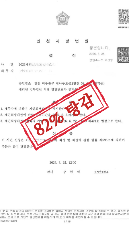 이 의뢰인분은 큰 탕감율로 개시결정을 받으셨습니다.